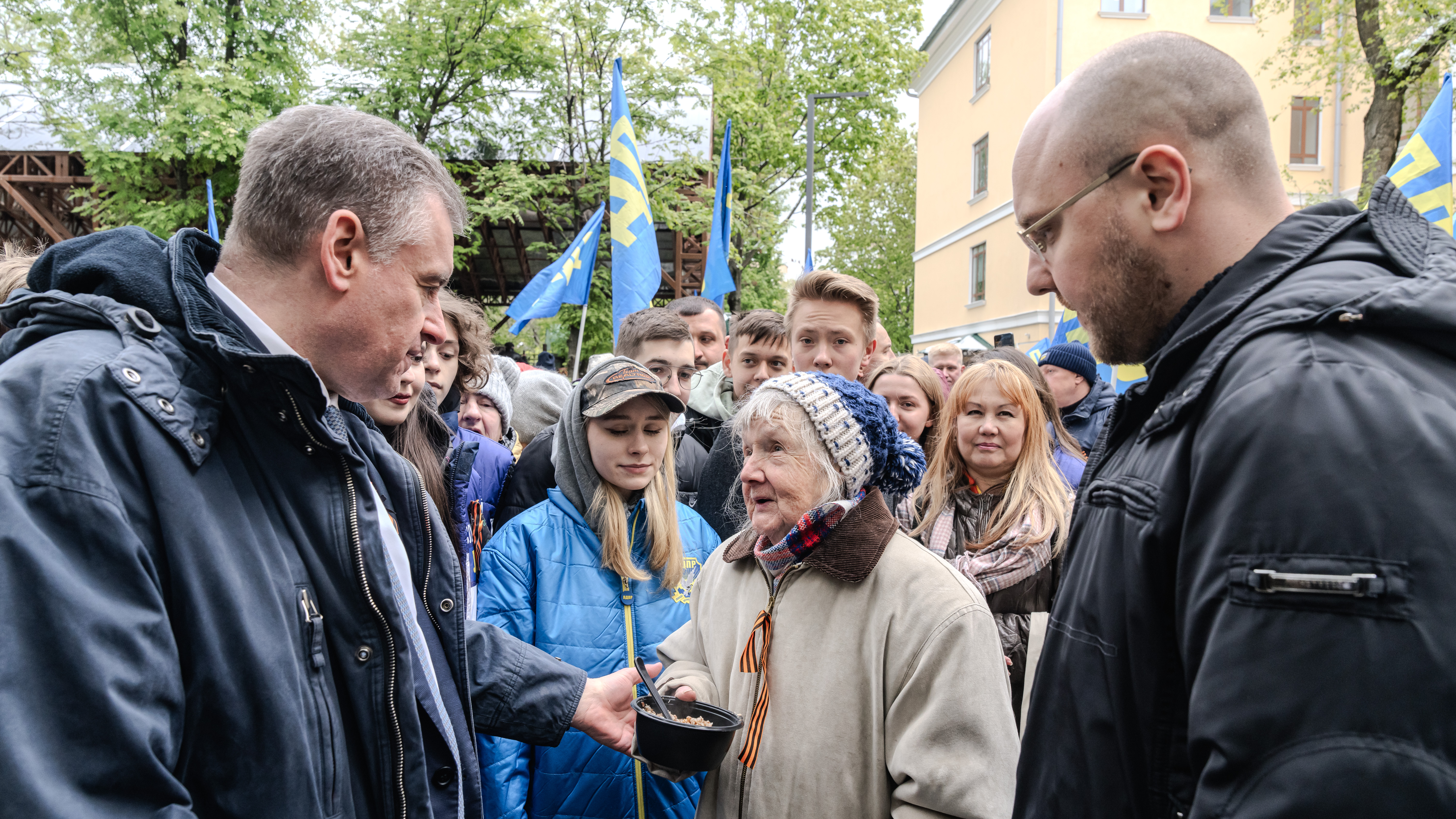 Организаторы праздника постарались учесть интересы каждого участника. На площадке ЛДПР работала полевая кухня, гостей угощали настоящей солдатской кашей — на приготовление блюда ушло 350 килограммов гречневой крупы и 160 килограммов тушенки.
