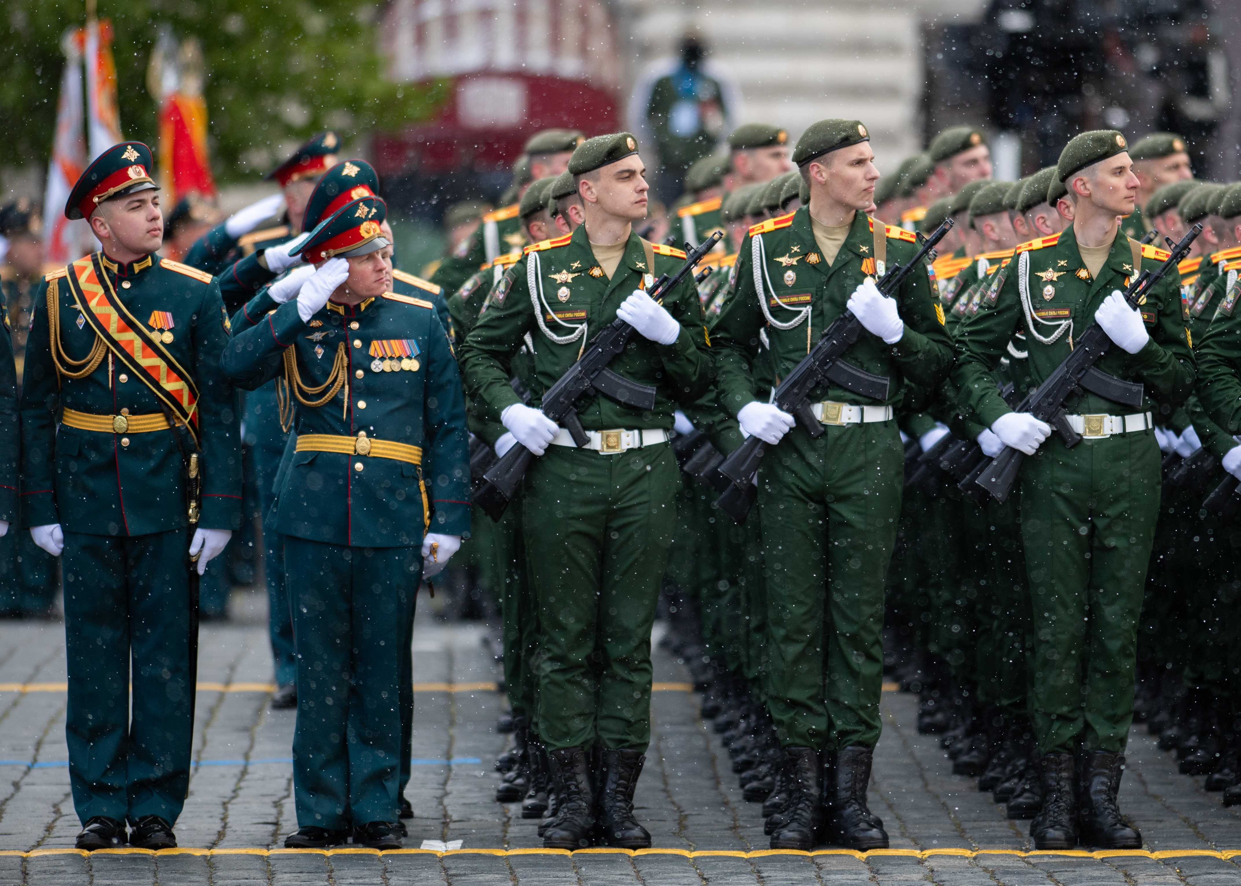 Традиционно Парад Победы начинается под музыку песни композитора Александрова «Священная война». Тогда, в годы Великой Отечественной войны, наш народ защищал свою Родину от уничтожения фашистскими захватчиками и смог одержать Победу над врагом, подчеркнул лидер ЛДПР Леонид Слуцкий. Одержит он ее и сегодня, добавил он.