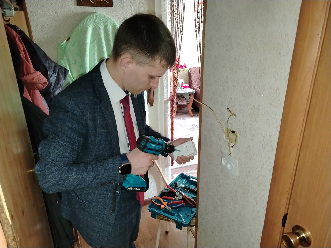 Он навестил пожилых защитников, поблагодарил их за службу, а одной из ветеранов подарил не только внимание, но и настоящий комфорт – починил розетку, которая долгое время не работала.